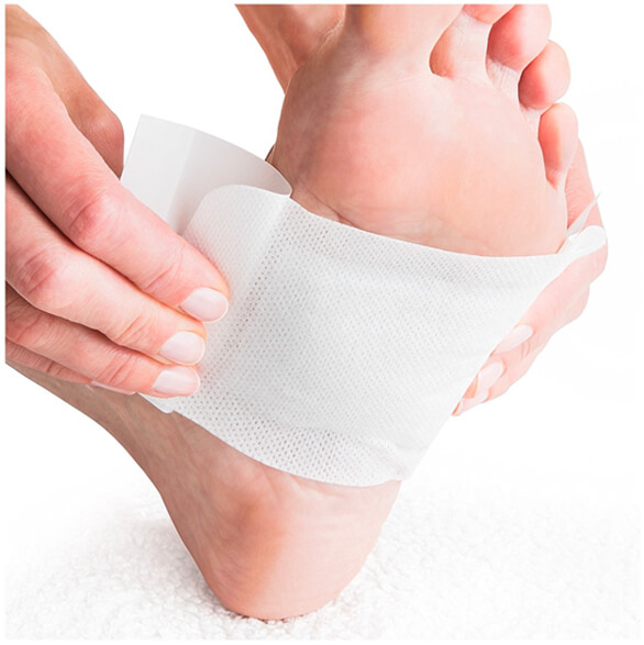 Place the patch at the middle of the foot. The soft side of the patch should contact the skin.